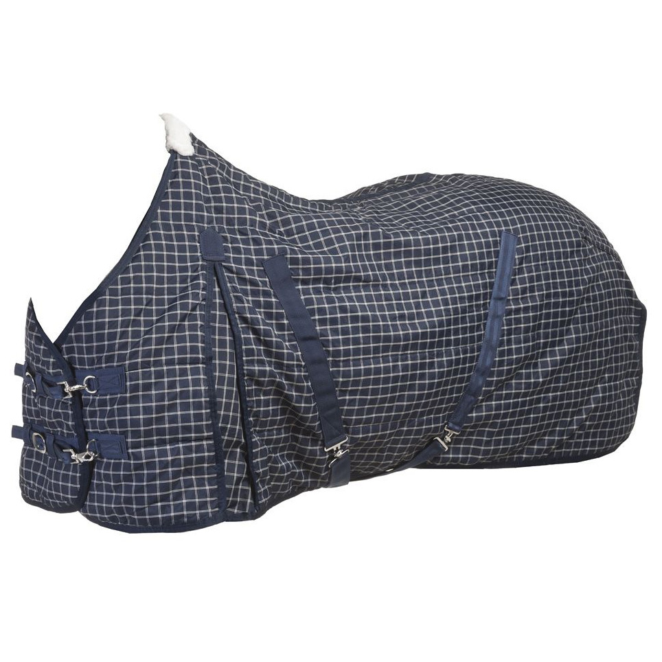 Попона "STABLE BLANKET", утеплитель 100 гр, р.155, цв. синяя/белая клетка.